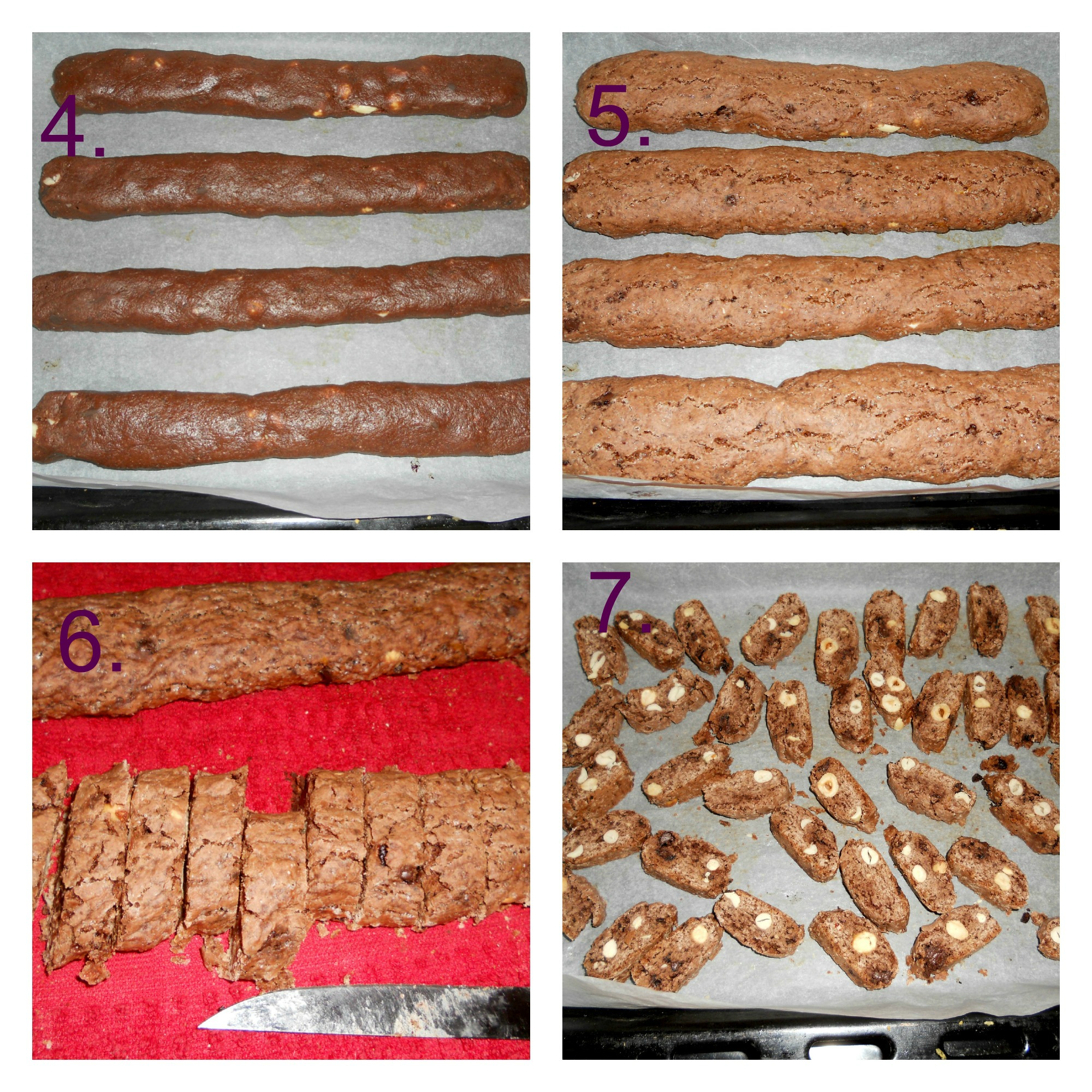 Despre biscotti, Mazilique spune că sunt un tip de biscuiţi italieneşti, de unde şi denumirea lor ce trădează atât ţara de provenienţă, cât şi modalitatea de preparare : sunt copţi de două ori în cuptor (bis = de două ori, cotto = copt. ;). Astfel, fiind destul de tari, povestea spune că pe vremuri îi mâncau soldaţii din legiunile romane. Aşa se face, îmi explic eu, că rezistă şi se păstrează aşa de bine în timp…